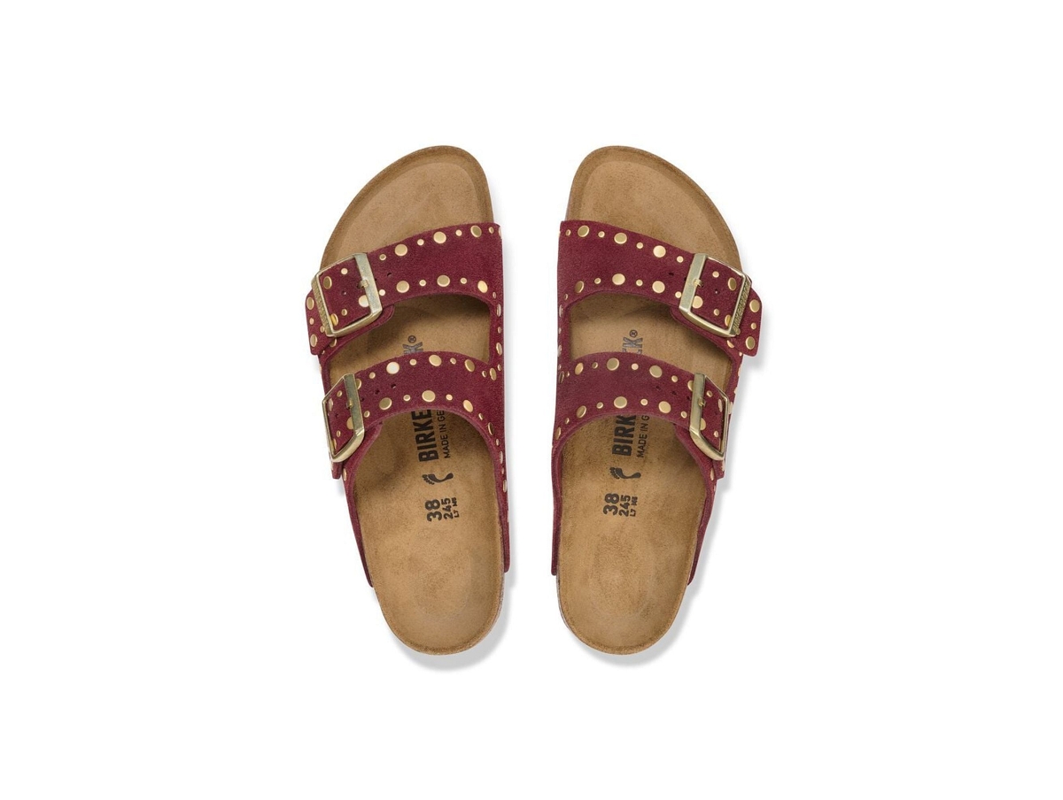 Cette réédition de l'iconique Arizona est proposée dans une teinte Zinfandel, un ton rouge_vinprofond.Latigeestréaliséeencuirvelours (daim) souple, tandisquelesrivetsmétalliques, appliquésuniquementensurface, assurentunefinitionélégantesansaltérerlaflexibilitéducuir. Lelitdepiedestanatomique, enliègeetlatex, recouvertdecuirvelours, pourunmaintiennatureletconfortable. LasemelleextérieureenEVAlégèreabsorbeleschocspourchaquepas. Deuxbridesréglablesàbouclemétalpermettentunajustementprécis.FabriquéeenAllemagne.