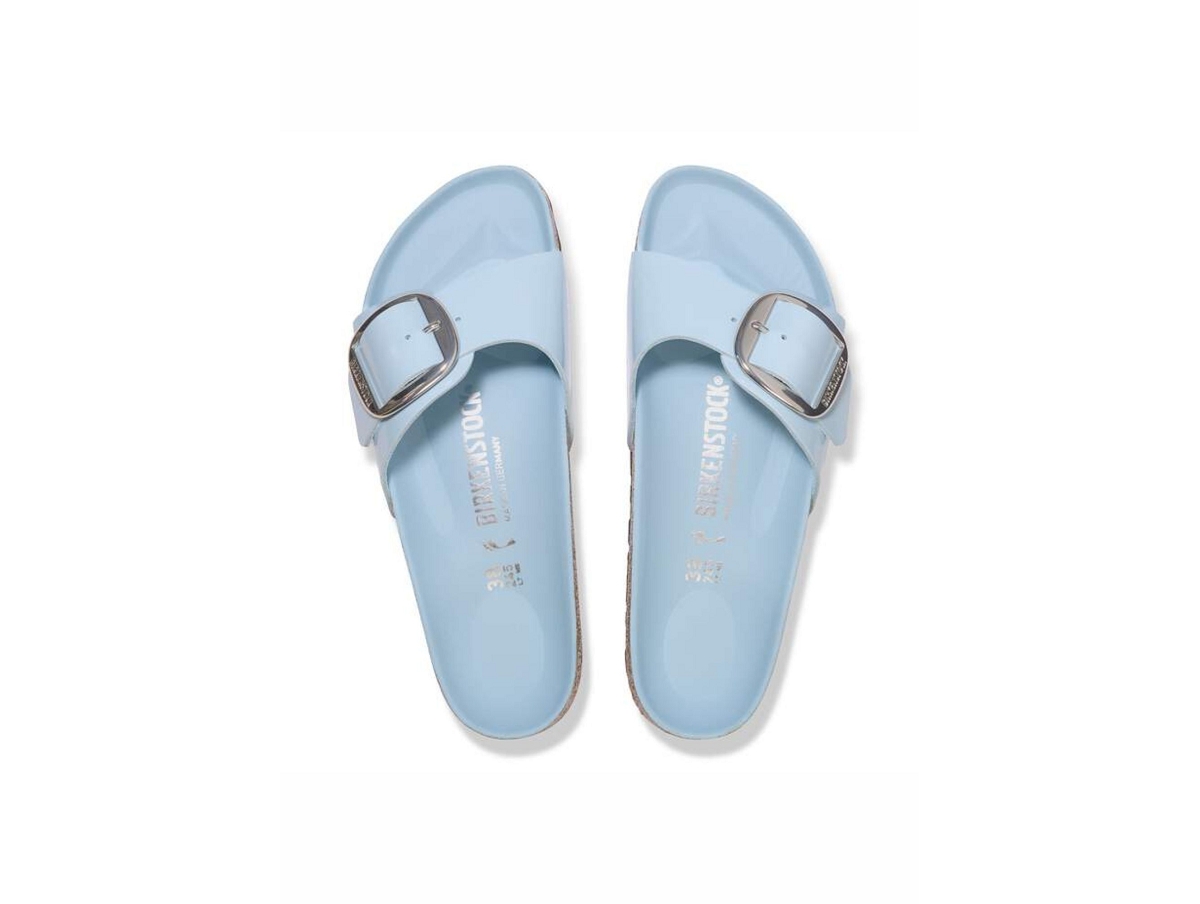 Icône intemporelle de la marque, la BIRKENSTOCK Madrid séduit par son design minimaliste et son confort incomparable. Dans cette version Big Buckle, elle se distingue par une grande boucle ardillon en métal au style raffiné, qui apporte une touche d'élégance contemporaine.Son lit de pied semi-exquisit est recouvert de cuir Piumato doux, offrant une sensation agréable à chaque pas. La tige en cuir naturel verni séduit par son éclat subtil et sa qualité haut de gamme, tandis que la semelle légère en EVA assure un excellent amorti et une marche souple.Lit de pied anatomique en liège et latex, semi-exquisitTige : cuir naturel verni haut de gammeSemelle de propreté : cuir Piumato douxSemelle extérieure : EVA, légère et flexibleDétails : bride unique avec grande boucle ardillon réglable en métal, finitions assortiesFabrication : « Made in Germany »