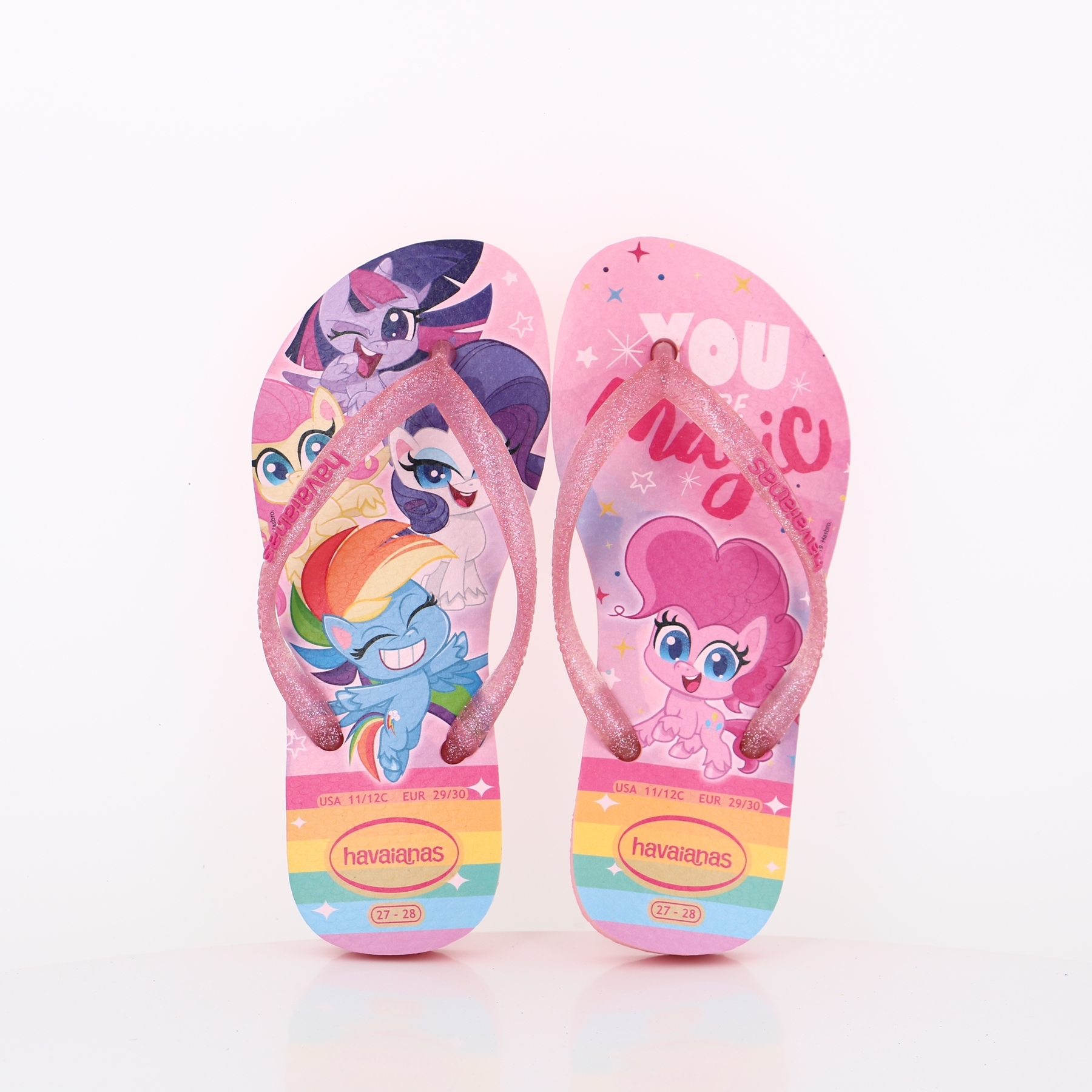 Appel à tous les fans de My Little Pony, les sandales pour enfants Slim My Little Pony sont arrivées ! Avec l'imprimé magique de poneys et les paillettes sur les lanières, elles enchanteront les pieds des plus petits. Confortables, solides, légères, antidérapantes, résistantes à la chaleur et à l'eau.