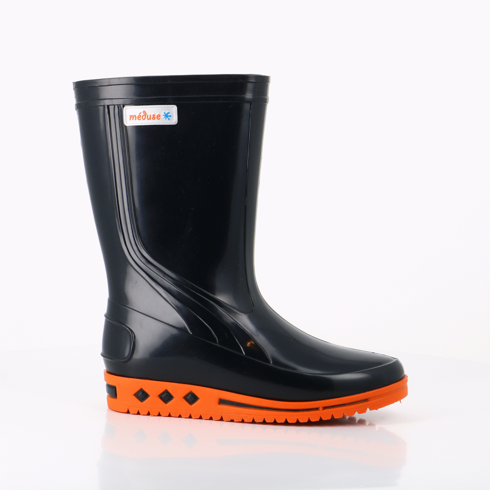 Les bottines Méduse sont des bottes de pluie de fabrication Française. Ce modèle Boreal Marine Orange est pour enfant de couleur bleu marine et orange. Ce modèle est pour enfant de couleur. Elles sont parfaites pour les temps pluvieux et sont faciles à entretenir.